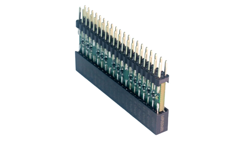 bPiShift is a compact, plug-and-play logic-level shifter that connects directly to the Raspberry Pi’s 40-pin GPIO header. It bridges the 3.3 V GPIO logic of your Pi with 5 V sensors, microcontrollers, or serial devices – safely and cleanly, without messy jumper wires or breadboard clutter.